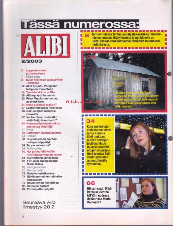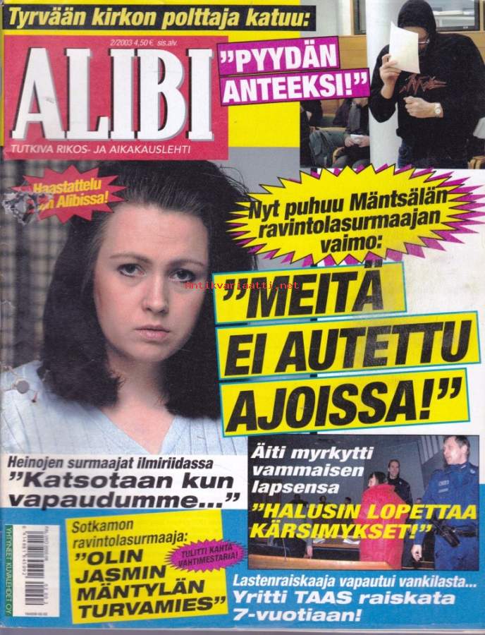 Alibi 2003 N:o 2. Äiti myrkytti vammaisen lapsensa. Tyrvään kirkon polttaja katuu. Lastenraiskaaja Raisiossa.