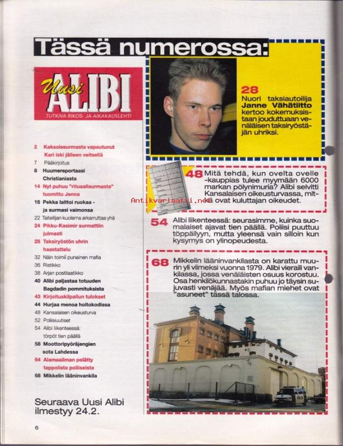 Alibi 2000 N:o 2. Rituaalisurmaaja Jenni. Totuus Karkun lapsisurmasta. Hoitajat hakkasivat pyörätuolipotilaan.