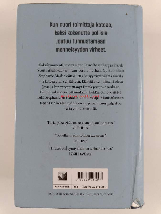 Tyydyttävä. Tarkempi kuntoluokka: K2- ; Hieman kulumaa reunoilla ja kulmissa, selkämyksessä hieman vinoutta, kontaktimuovipäällystys, kirjaston poistokirja