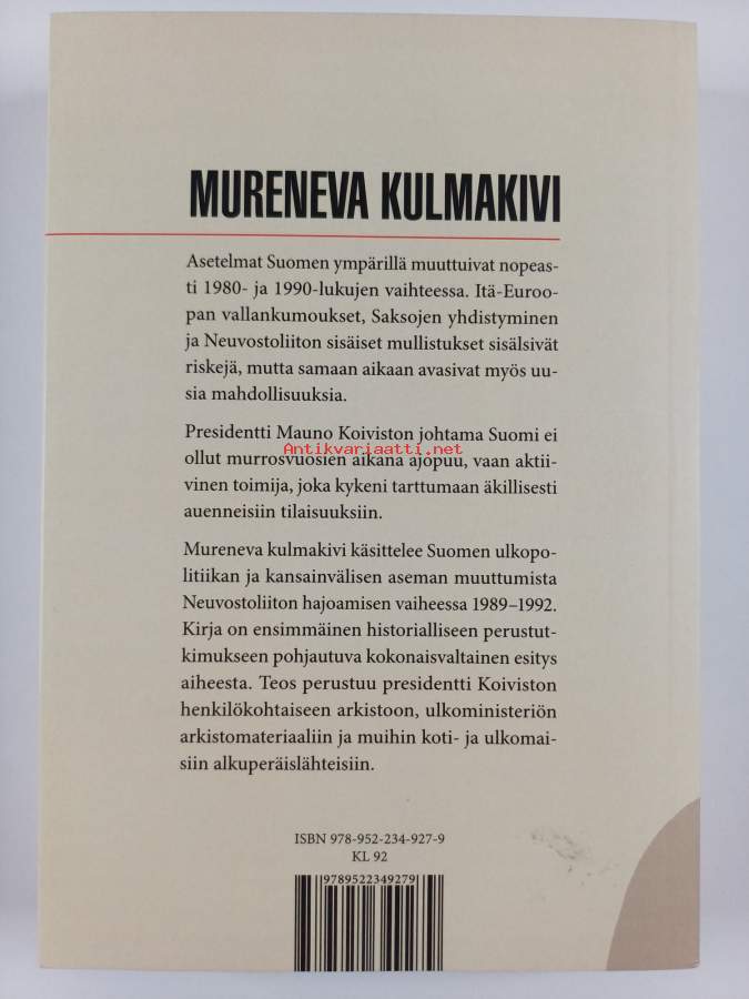 Erinomainen. Tarkempi kuntoluokka: K4- ; Pienoista nuhruisuutta takakannessa