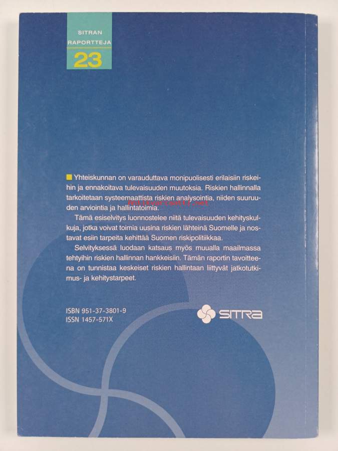 Muu(t) tekijä(t): Harriet LonkaSarja: Sitran raportteja 23Asiasanat: maanpuolustus, terrorismi, kansantalous, luonnononnettomuudet, rikollisuus, energia, riskit, ympäristöongelmat, katastrofit, riskienhallinta, muuttoliike, tietoturvallisuus, terveydensuojelu