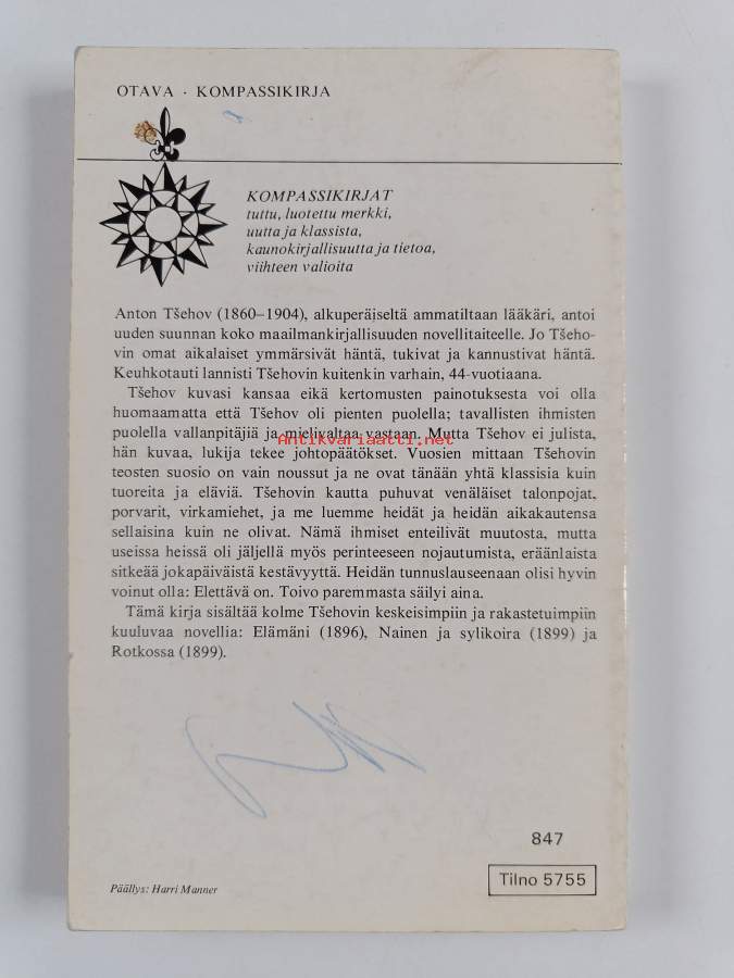 Muu(t) tekijä(t): Ulla-Liisa HeinoMerkinnät: omistajamerkintä (tarra)Sarja: KompassikirjaAlkuteos: Dama s sobatskoiAsiasanat: venäläinen kirjallisuus