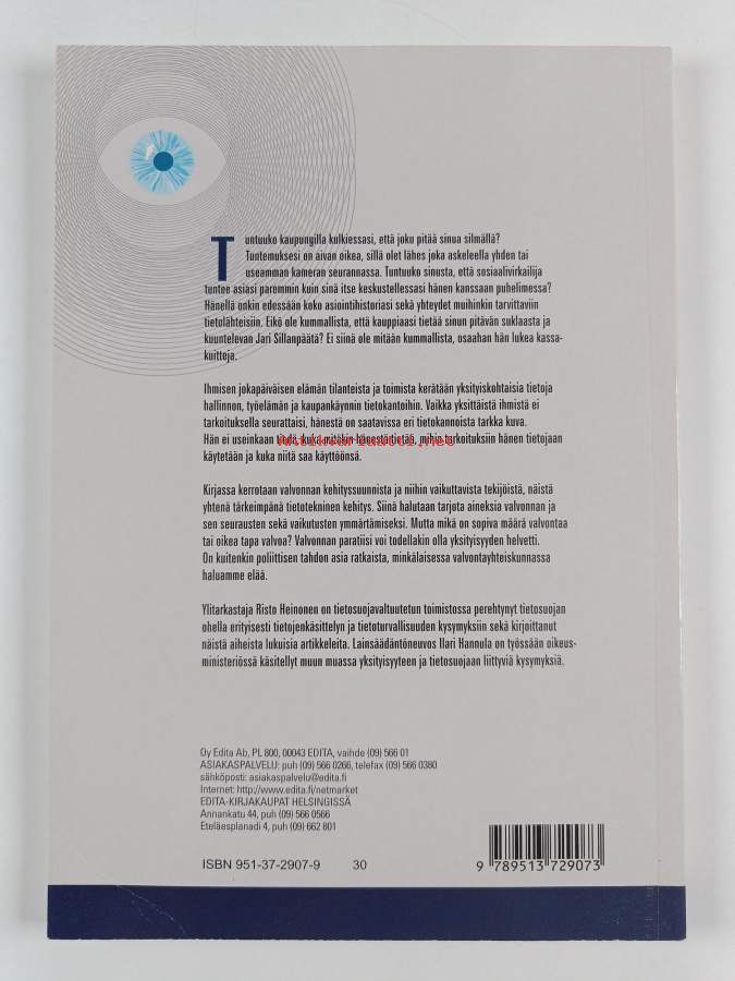 Muu(t) tekijä(t): Ilari HannulaMerkinnät: omistajamerkintä (leima)Sarja: SiltaAsiasanat: vaikutukset, kuluttajat, poliisi, tietotekniikka, tietoyhteiskunta, turvallisuus, tietoverkot, julkisuus, yhteiskunta, teknologia, tietoturva, tietosuoja, tietokannat, työntekijät, valvonta, henkilörekisterit, kansalaiset, tietorekisterit, kontrollipolitiikka, yksityisyys, yksilönsuoja, valvontajärjestelmät, informationsteknik, samhället, intimitet, datanät, Personregister, informationssamhälle, övervakning, datasekretess, integritetsskydd, dataregister, övervakningssystem