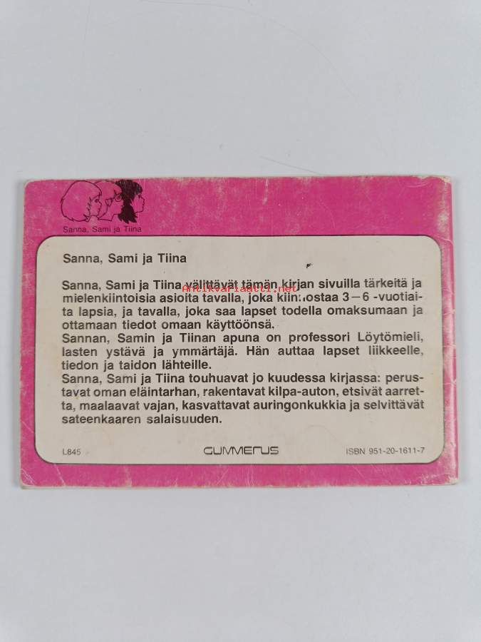 Muu(t) tekijä(t): Helka Arrakoski, Anne-Marie ConstantSarja: Sanna, Sami ja Tiina -kirjatAlkuteos: The racing cart