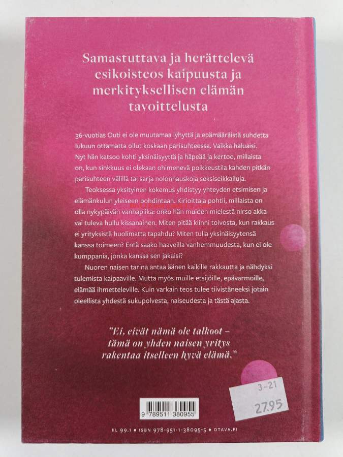 Asiasanat: naiset, parisuhde, yksineläjät, sinkut, kokemukset, naiseus, rakkaussuhde, häpeä, yksinäisyys, elämä, mielekkyys, kaipaus