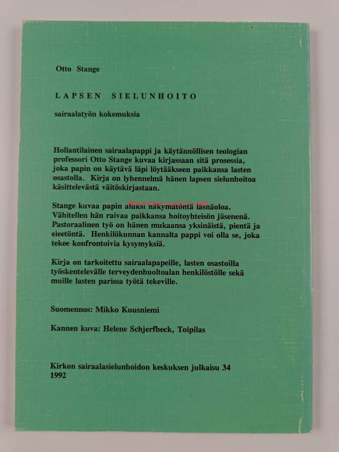 Merkinnät: omistajamerkintä (tarra)Sarja: Kirkon sairaalasielunhoidon keskuksen julkaisu 34Asiasanat: papit, sielunhoito, kuolema, sairaalat, hoitoyhteisöt, sairaalasielunhoito, sairaudet, lapset (ikäryhmät)