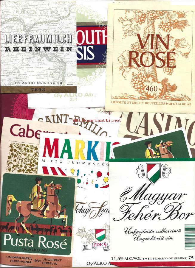 Alkon vuosikertaviinejä - viinietiketti viinaetiketti 4 eril