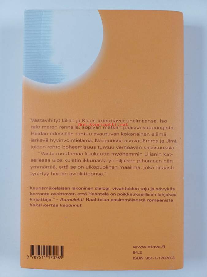 Erinomainen. Tarkempi kuntoluokka: K4- ; Selkämyksessä aavistus vinoutta. Kansipaperin kunto: pienoista kulumaa reunoilla, muuten hyvä