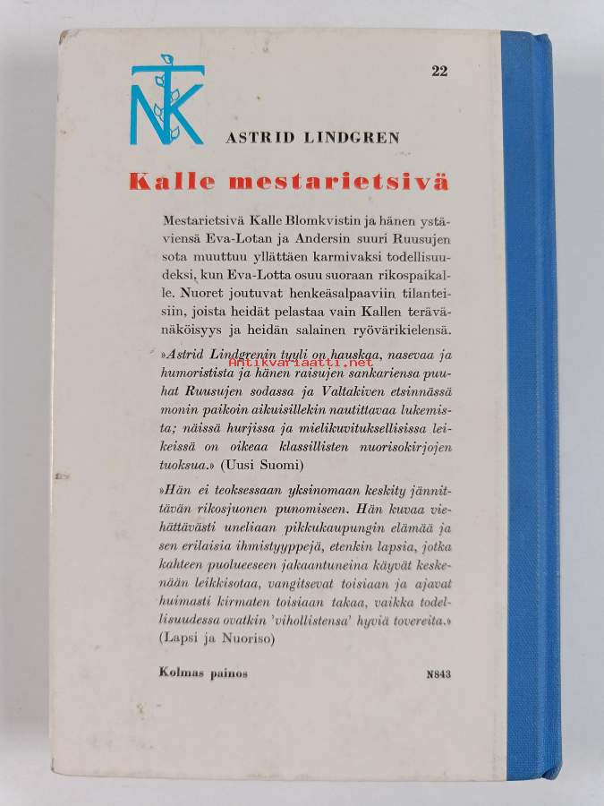 Muu(t) tekijä(t): Laila JärvinenMerkinnät: omistajamerkintäSarja: Nuorten toivekirjasto 22Alkuteos: Mästerdetektiven Blomkvist lever farligt