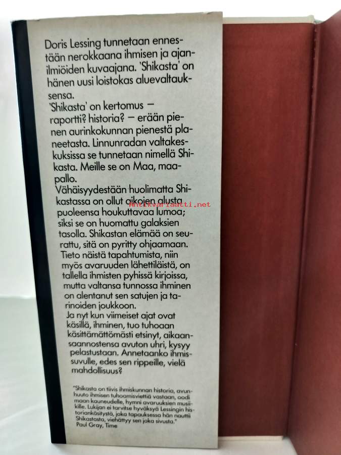Shikasta on kertomus - raportti? historia? - erään pienen aurinkokunnan pienestä planeetasta. Linnunradan valtakeskuksissa se tunnetaan nimellä Shikasta. Meille se on Maa, maapallo. Shikastan elämää on seurattu, sitä on pyritty ohjaamaan. Tieto näistä tapahtumista, niin myös avaruuden lähettiläistä, on tallella ihmisten pyhissä kirjoissa, mutta valtansa tunnossa ihminen on alentanut sen satujen ja tarinoiden joukkoon. ja nyt kun viimeiset ajat ovat käsillä, ihminen, tuo tuhoaan käsittämättömästi etsinyt, aikaansaannostensa avuton uhri, kysyy pelastustaan. Annetaanko ihmissuvulle vielä mahdollisuus?