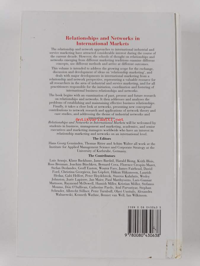 Muu(t) tekijä(t): Thomas Ritter, Achim Walter ym.Sarja: International business and management seriesAsiasanat: markkinointi, verkostot, suhdemarkkinointi, verkostomarkkinointi, Marketing, networks, Relationship marketing