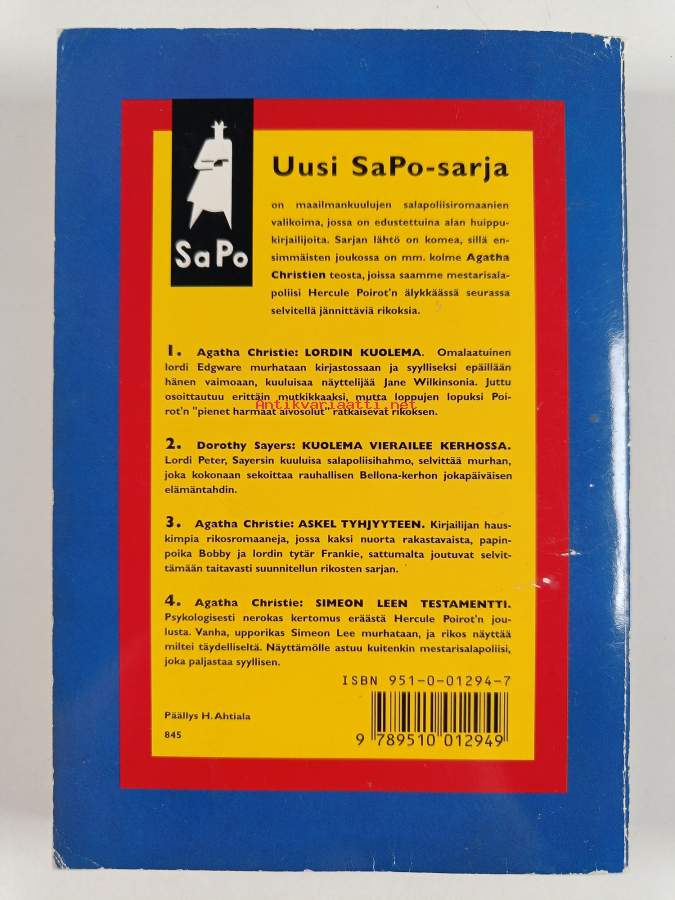 Muu(t) tekijä(t): Eila PennanenMerkinnät: omistajamerkintä (tarra)Sarja: Sapo 1Alkuteos: Lord Edgware diesAsiasanat: hercule poirot