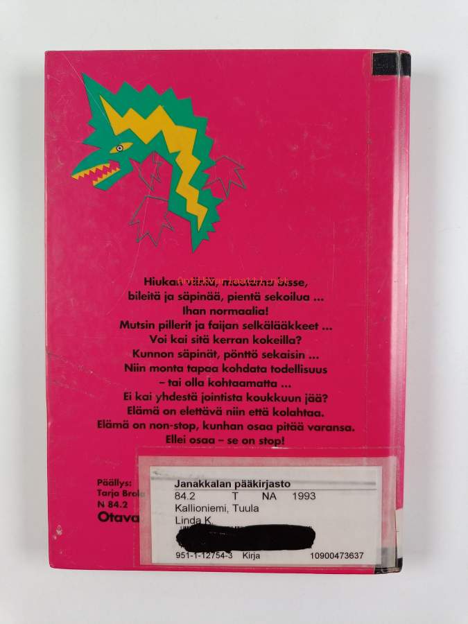 Tyydyttävä. Hieman kulumaa, kontaktimuovipäällystys, kirjaston poistokirja, selkämyksessä hieman vinoutta, edessä vanha hintalappu