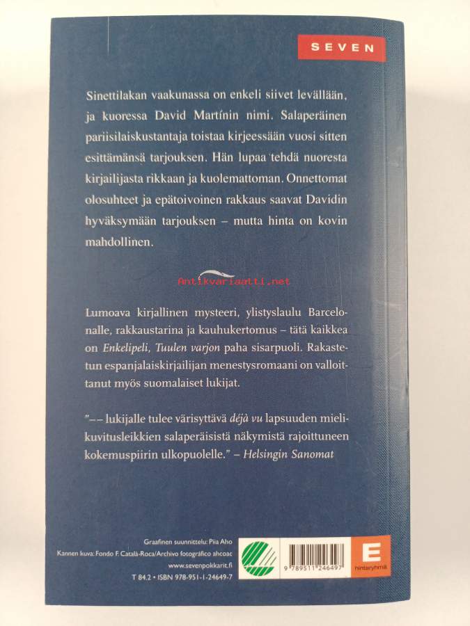 Muu(t) tekijä(t): Anu Partanen, Tarja HärkönenSarja: SevenAlkuteos: El juego del angelAsiasanat: maaginen realismi, Barcelona