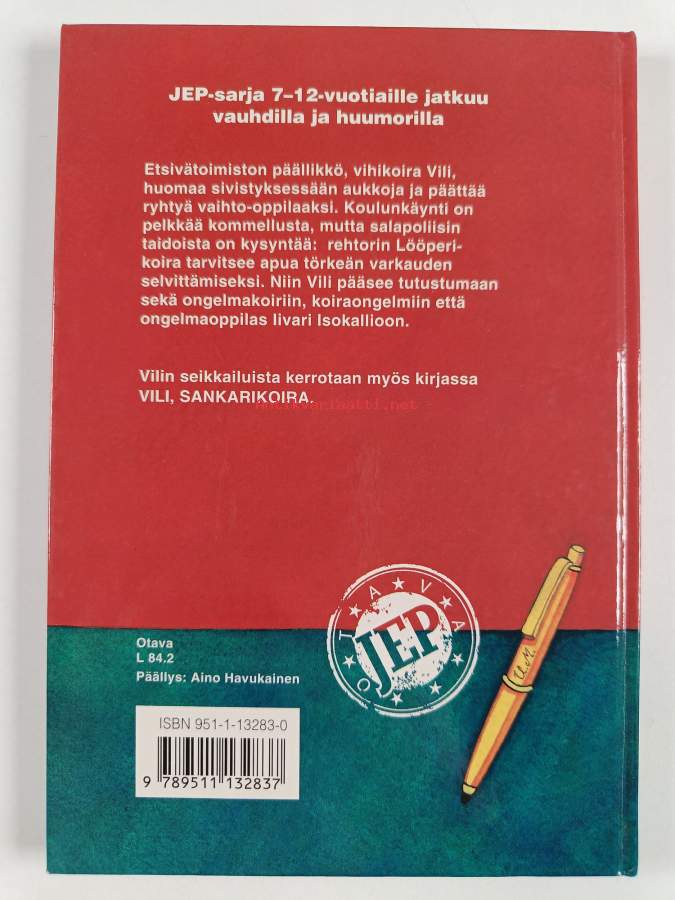 Muu(t) tekijä(t): Aino HavukainenMerkinnät: omistajamerkintäSarja: JepAsiasanat: huumori, koira, koulukiusaaminen, koulunkäynti, helppolukuiset kirjat, salapoliisit