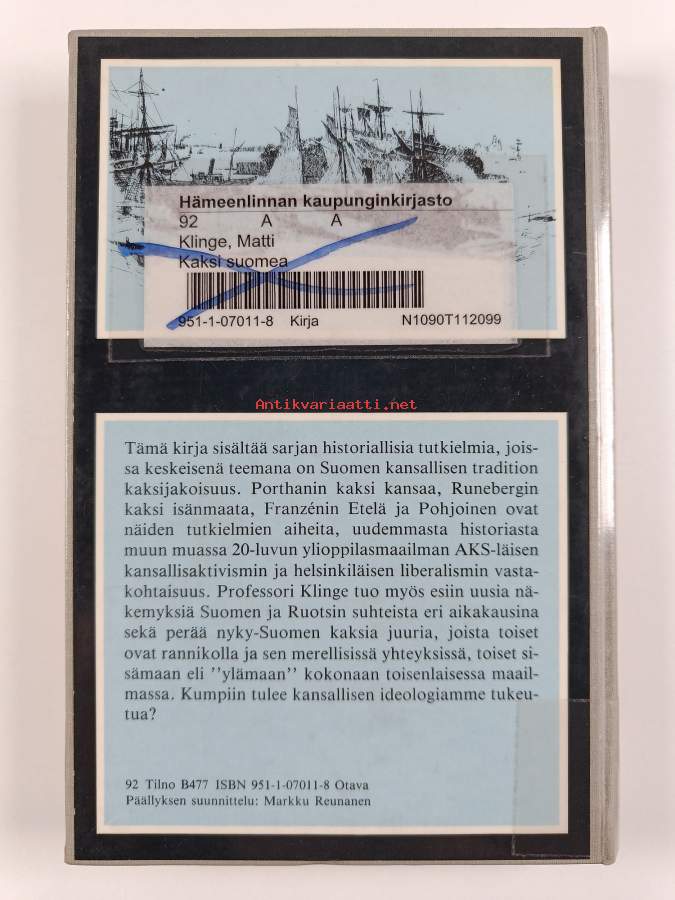 Tyydyttävä. Hieman kulumaa, hieman taipumaa etukannessa, kontaktimuovipäällystys, kirjaston poistokirja