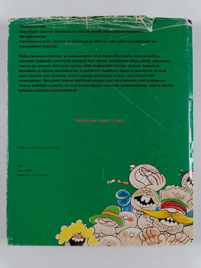 Hyvä. Tarkempi kuntoluokka: K3- ; Pienoista kulumaa kansissa, pienoista kolhua selkämyksen päissä, pienoista tahraisuutta kansissa. Kansipaperin kunto: joitain repeämiä/kulumaa & tahraisuutta
