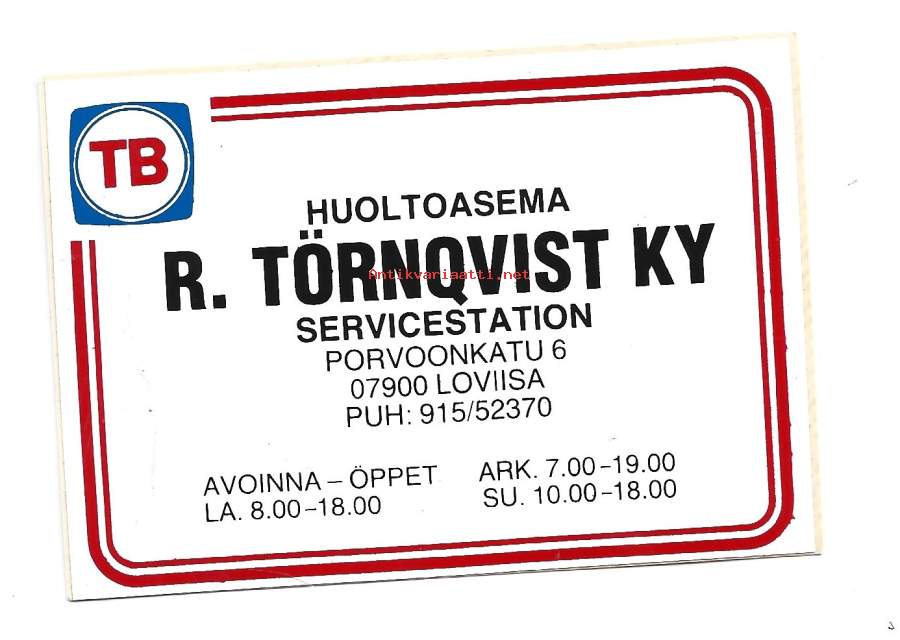 Teboil R Törnqvist Loviisa tarra 7x10 cm