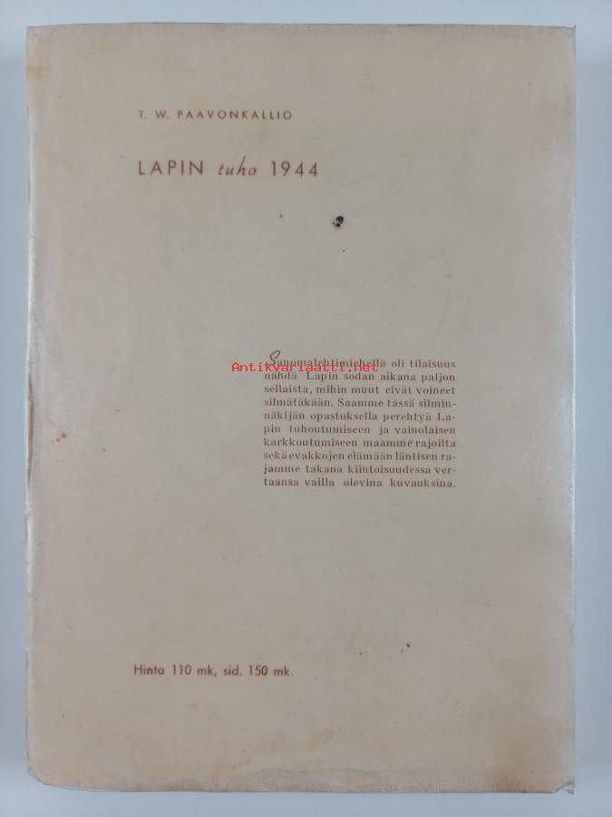 Merkinnät: exlibris: Kalevi RajalaAsiasanat: Lapin sota