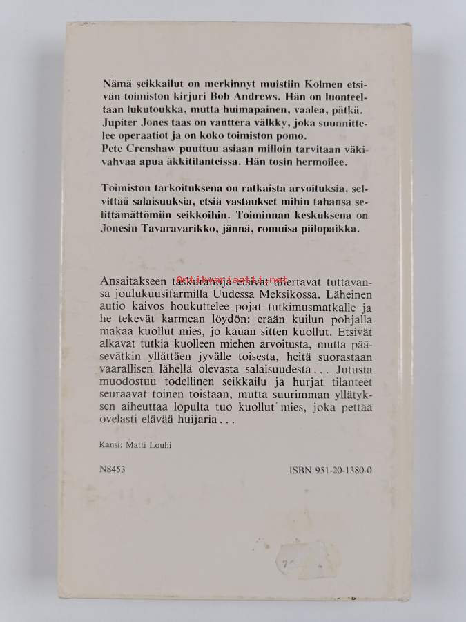 Hyvä. Tarkempi kuntoluokka: K3- ; Pienoista kolhua kansissa, hieman kulumaa, pienoista tahraisuutta, takana hintalapun jäämää