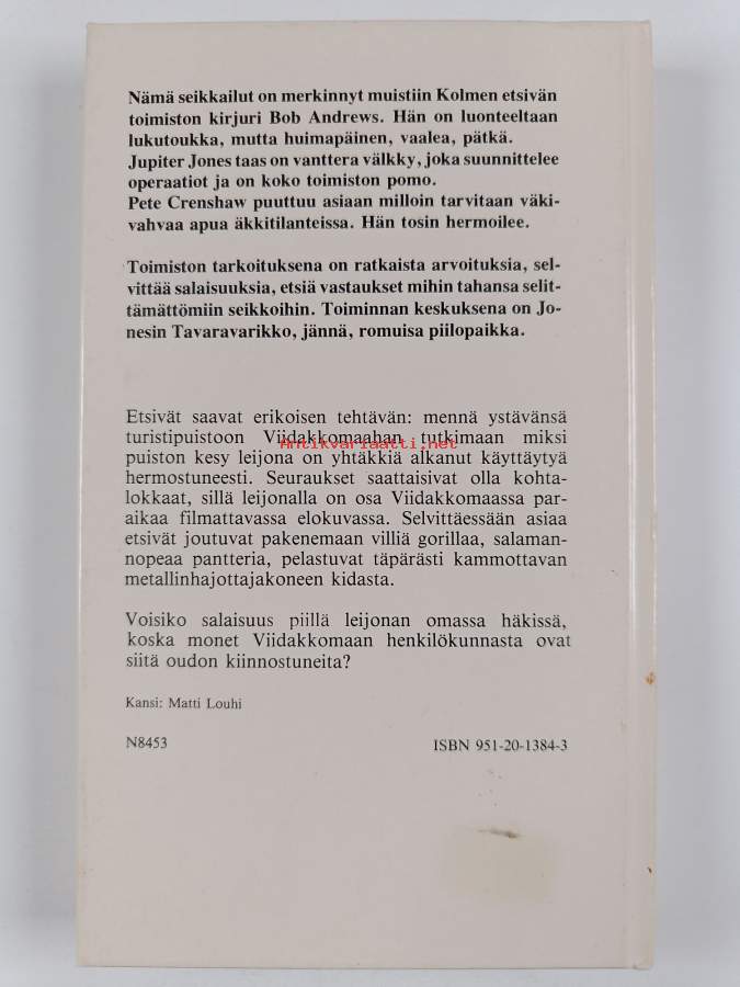 Muu(t) tekijä(t): Annikki (suom.) LievonenSarja: Alfred Hitchcock ja kolme etsivää 14Alkuteos: Alfred Hitchcock and the three ivestigators in The mystery of the nervous lion