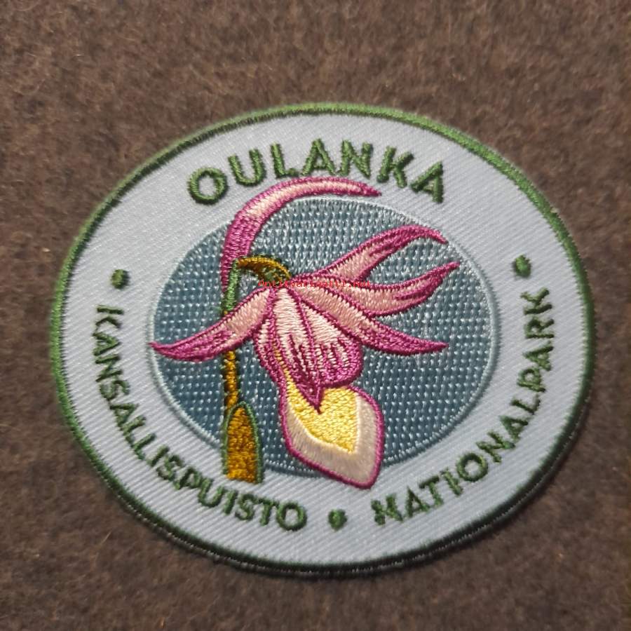 Oulanka kansallispuisto / matkailumerkki / merkki / badge pohjaväri kangasmerkki