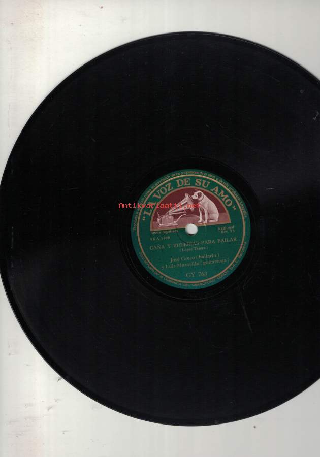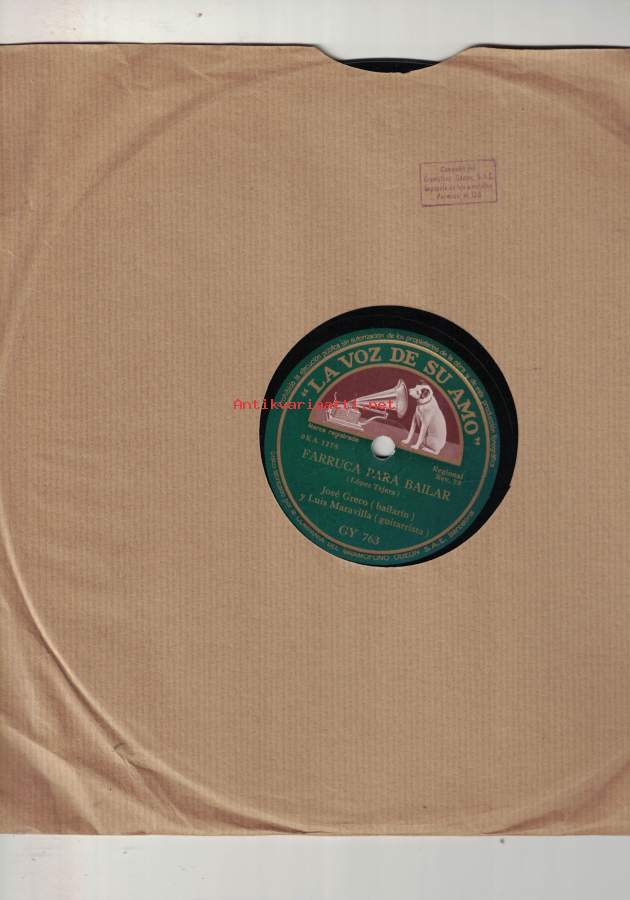 José Greco, bailarín ; Luis Maravilla, guitarristaSiisti ja hyvin säilynyt savikiekko-postipaketti