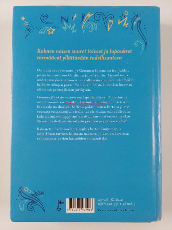 Muu(t) tekijä(t): Eeva ParviainenAlkuteos: The year of taking chancesAsiasanat: naiset, ihmissuhteet, ystävyys, elämänmuutokset, juhlat, toiveet, maaseutu, uusivuosi, vänskap, lupaukset, landsbygd, mänskliga relationer, kvinnor, ystävystyminen, fester, vastoinkäymiset, nyår