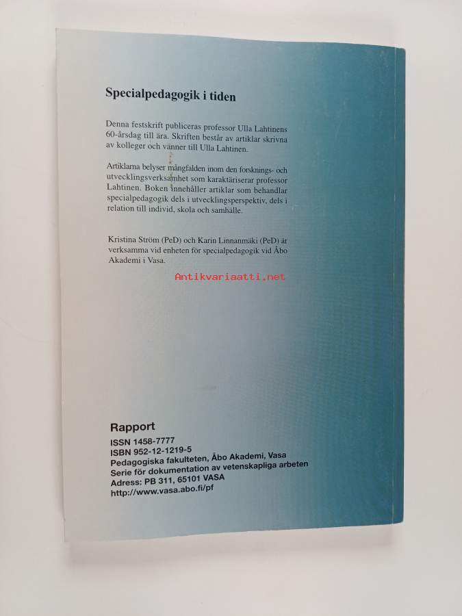 Muu(t) tekijä(t): Kristina StrömSarja: Rapport / Pedagogiska fakulteten. Åbo Akademi 4; Rapport från Pedagogiska fakulteten vid Åbo Akademi 4Asiasanat: erityiskasvatus, specialpedagogik (verksamhet)