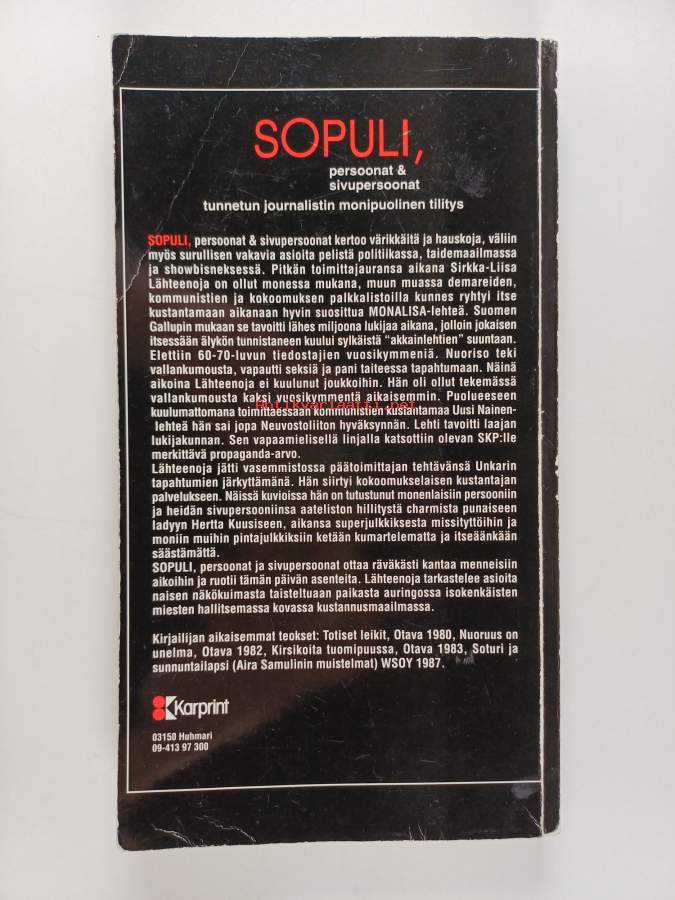 Asiasanat: muistelmat, poliitikot, historia, julkisuuden henkilöt, asenteet, kritiikki, kustannusala, aikakauslehdet, mielipidekirjallisuus, naisnäkökulma, memoarer, kritik, toimittajat (media), journalister, tidskrifter, politiker, kvinnoperspektiv, attityder, offentliga personer, förlagsbranschen, debattlitteratur