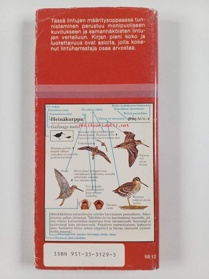 Kotimaan linnut, 1998. 3. painos. Lintuopas joka esittelee kaikki Suomessa pesivät talvehtivat ja läpimuuttavat lajit.Kustakin lajista on valokuva,