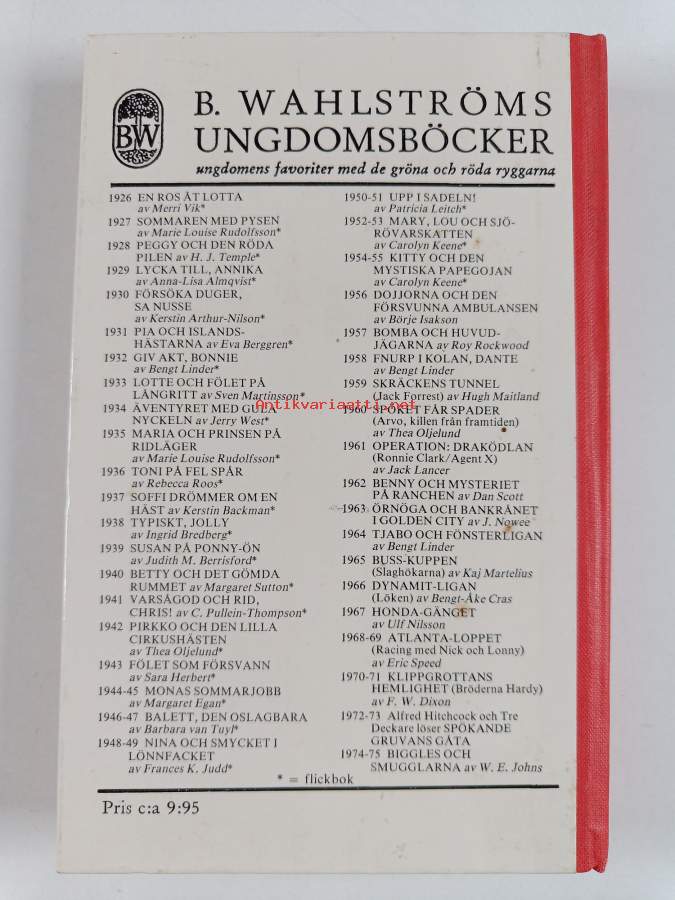 Muu(t) tekijä(t): Jenny BertheliusSarja: B. Wahlströms ungdomsböcker 1954-1955Alkuteos: The double jinx mystery