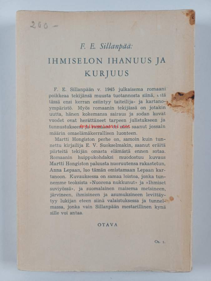 Tyydyttävä. Tarkempi kuntoluokka: K2+ ; Pientä kulumaa, pientä tahraisuutta kansissa, selkämyksessä hieman vinoutta, selkämyksessä kevyttä lukutaittumaa