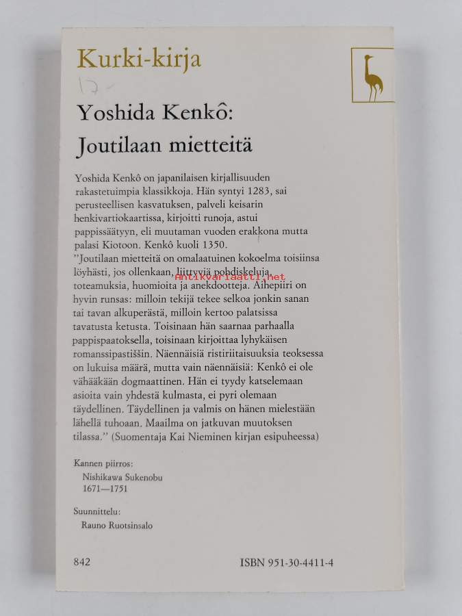 Muu(t) tekijä(t): Kai (suom.) NieminenSarja: Kurki-kirjaAlkuteos: TsurezuregusaAsiasanat: japanilainen kirjallisuus