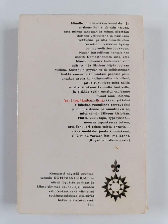 Tyydyttävä. Tarkempi kuntoluokka: K2+ ; Hieman nuhruisuutta, hieman kulumaa kansissa, selkämyksessä hieman vinoutta, selkämyksessä lukutaittumaa. muutama sivu hieman irronnut alareunasta