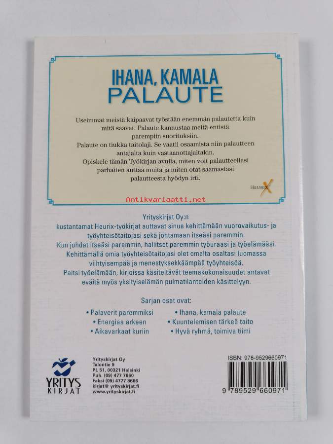 Muu(t) tekijä(t): Maria PitkonenSarja: Heurix-työkirja 4Asiasanat: työelämä, työyhteisöt, vuorovaikutus, sosiaalinen vuorovaikutus, sosiaaliset taidot, palaute
