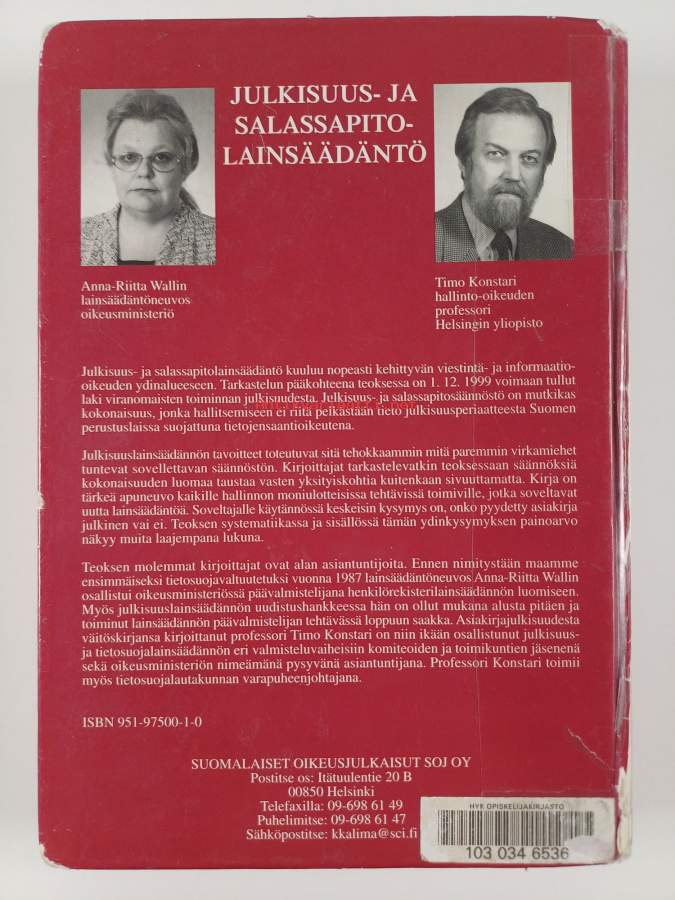 Julkisuus- ja salassapitolainsäädäntö : laki viranomaisten toiminnan julkisuudesta ja siihen liittyvät lait