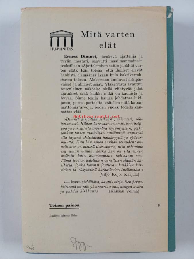 Merkinnät: omistajamerkintäAlkuteos: What we live byAsiasanat: kauneus, estetiikka, estetik, skönhet