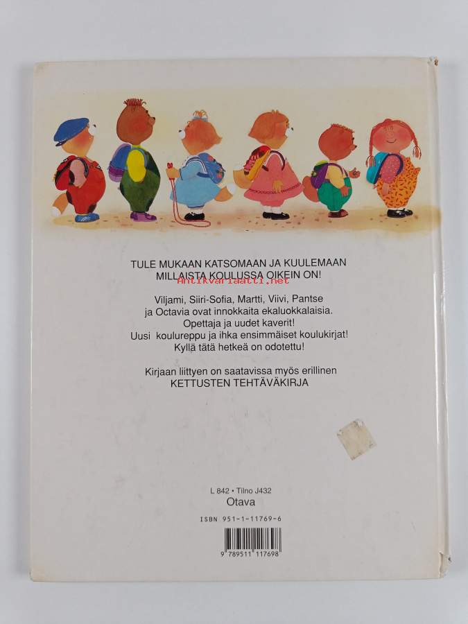 Tyydyttävä. Jonkin verran kulumaa, pientä repeämää selkämyksessä, takana hintalapun jäämää, selkämyksessä hieman vinoutta
