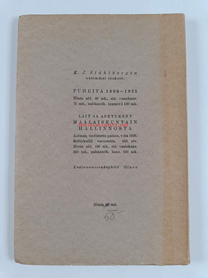 Hyvä. Tarkempi kuntoluokka: K3- ; Hieman kulumaa. selkämys lähtenyt hieman irtoamaan