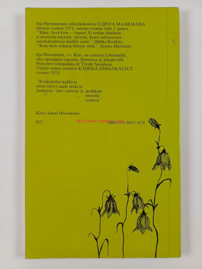 Kädessä linnunlaulut : runoja (signeerattu, tekijän omiste)