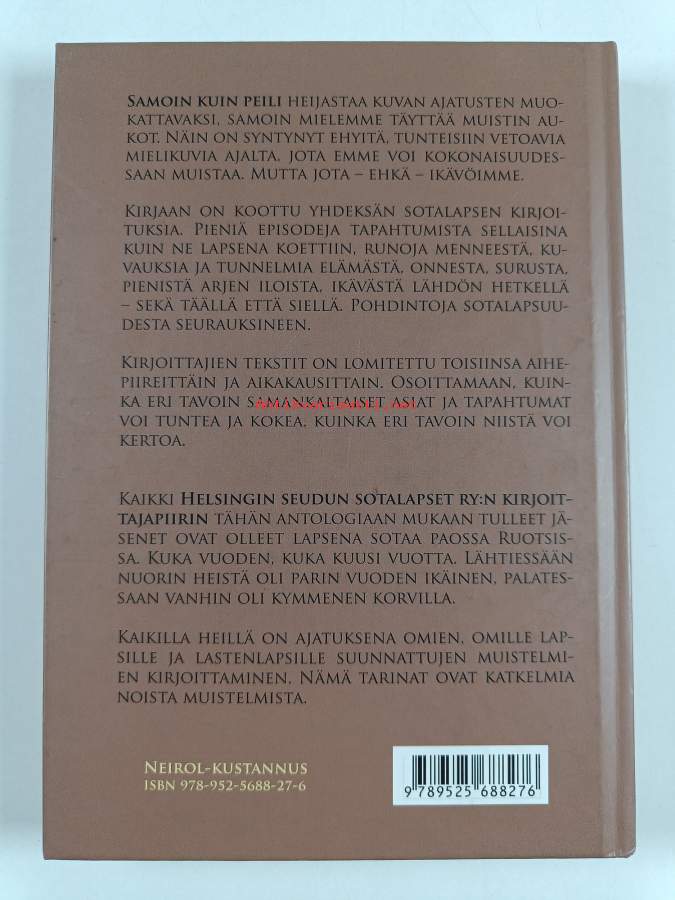 Muu(t) tekijä(t): Kari KaislaMerkinnät: omistajamerkintäAsiasanat: muistelmat, sota-aika, lapsuus, elämänkaari, sotalapset, lapset (ikäryhmät)