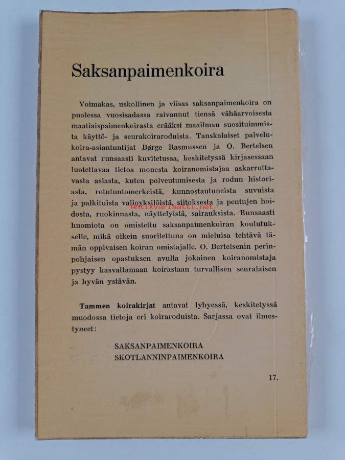 Muu(t) tekijä(t): Vilho Hokkanen, O. BertelsenSarja: Tammen koirakirjatAlkuteos: SchaeferhundenAsiasanat: saksanpaimenkoira