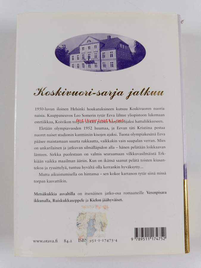 Hyvä. Hieman kulumaa kansissa, pienoista kolhua etukannessa, takana hintalapun jäämää. Kansipaperin kunto: jonkin verran kulumaa/pienoisia repeämiä