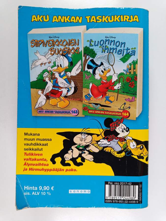 Tyydyttävä. Hieman taitejälkeä kansissa, hieman repeämää reunoilla ja kulmissa, hieman tahraisuutta, hieman kulumaa