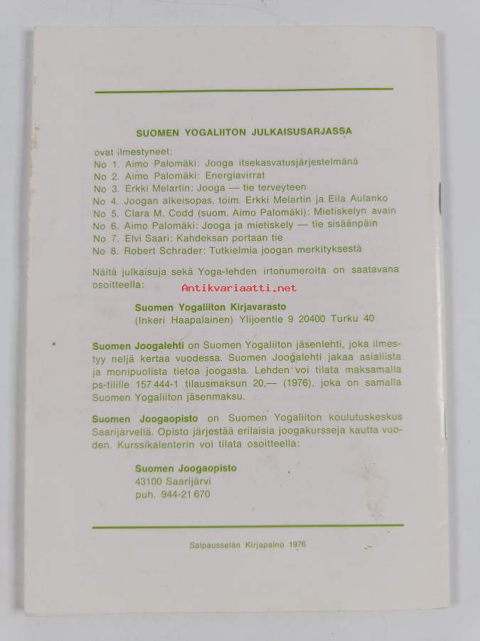 Muu(t) tekijä(t): Ulla ReimsSarja: Suomen yogaliitto ry:n julkaisusarja 9Asiasanat: kasvisruoka