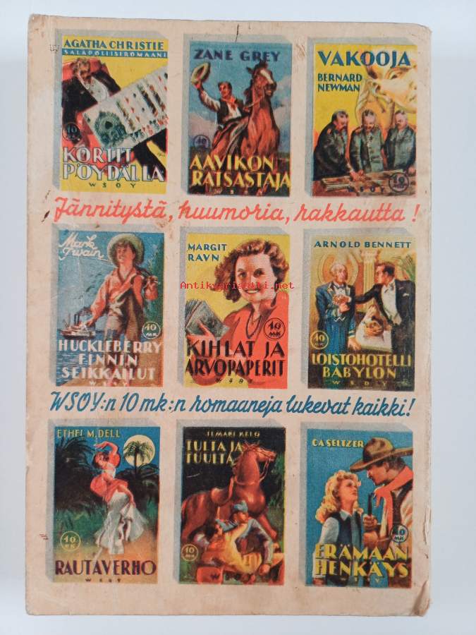 Tyydyttävä. Tarkempi kuntoluokka: K2+ ; Pientä tahraisuutta, hieman taitejälkeä kansissa, selkämyksessä hieman vinoutta, selkämyksessä lukutaittumaa
