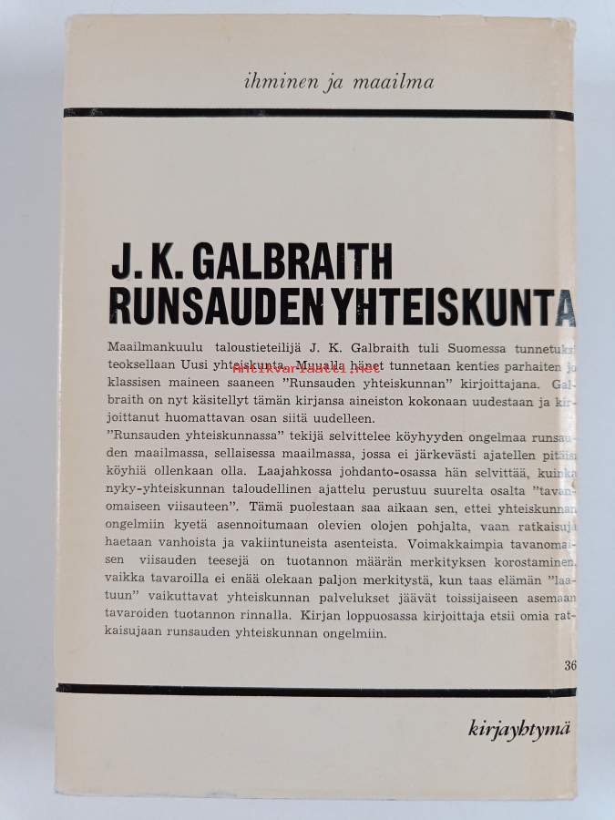 Muu(t) tekijä(t): Paula Sajavaara, Kari SajavaaraSarja: Ihminen ja maailmaAlkuteos: The affluent societyAsiasanat: taloustieteet