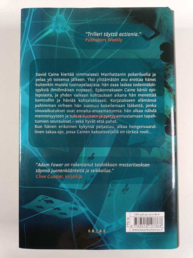Muu(t) tekijä(t): Jaakko KankaanpääAlkuteos: ImprobableAsiasanat: kaupungit, uhkapelit, ennustaminen, epilepsia, kirjallisuuspalkinnot, todennäköisyys, jännityskirjallisuus, agentit, kaksoset, ihmiskokeet, veljet, esikoisteokset, Laplacen demoni