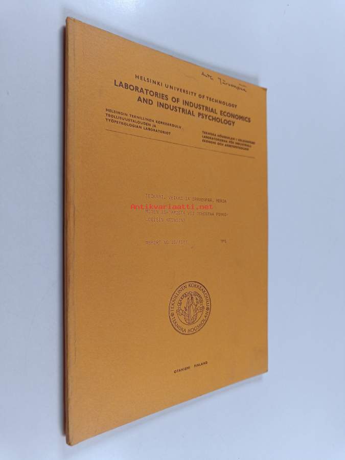 Muu(t) tekijä(t): Merja JärvenpääMerkinnät: omistajamerkintäSarja: Report / Helsinki University of Technology, Laboratories of Industrial Economics and Industrial Psychology 59